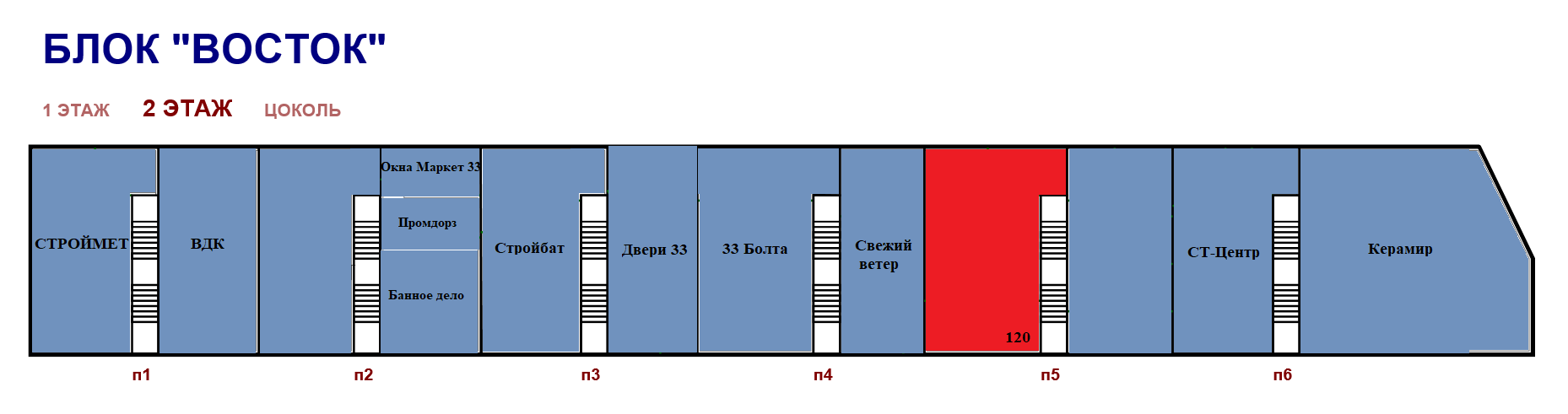 Торговая площадь корпус "Восток" 2 этаж 120 м2